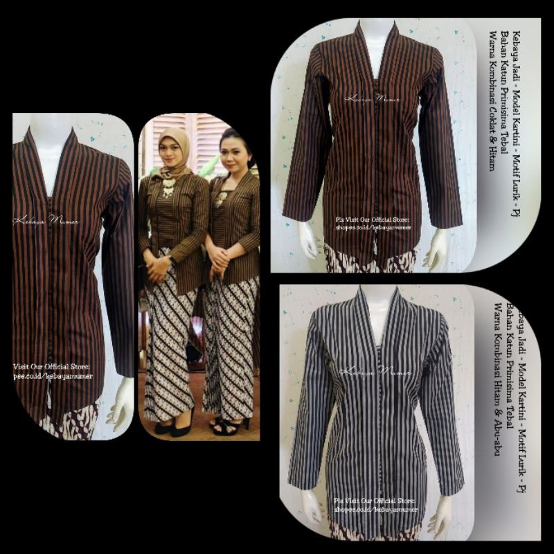 Kebaya yang terbuat dari kain lurik khas jawa terbuat asli dari kain tenun, maka kami menyebutnya kebaya surjan, sangat serasi di pasangkan dengan surjan lurik untuk pasangan pria, siap kirim keseluruh indonesia.